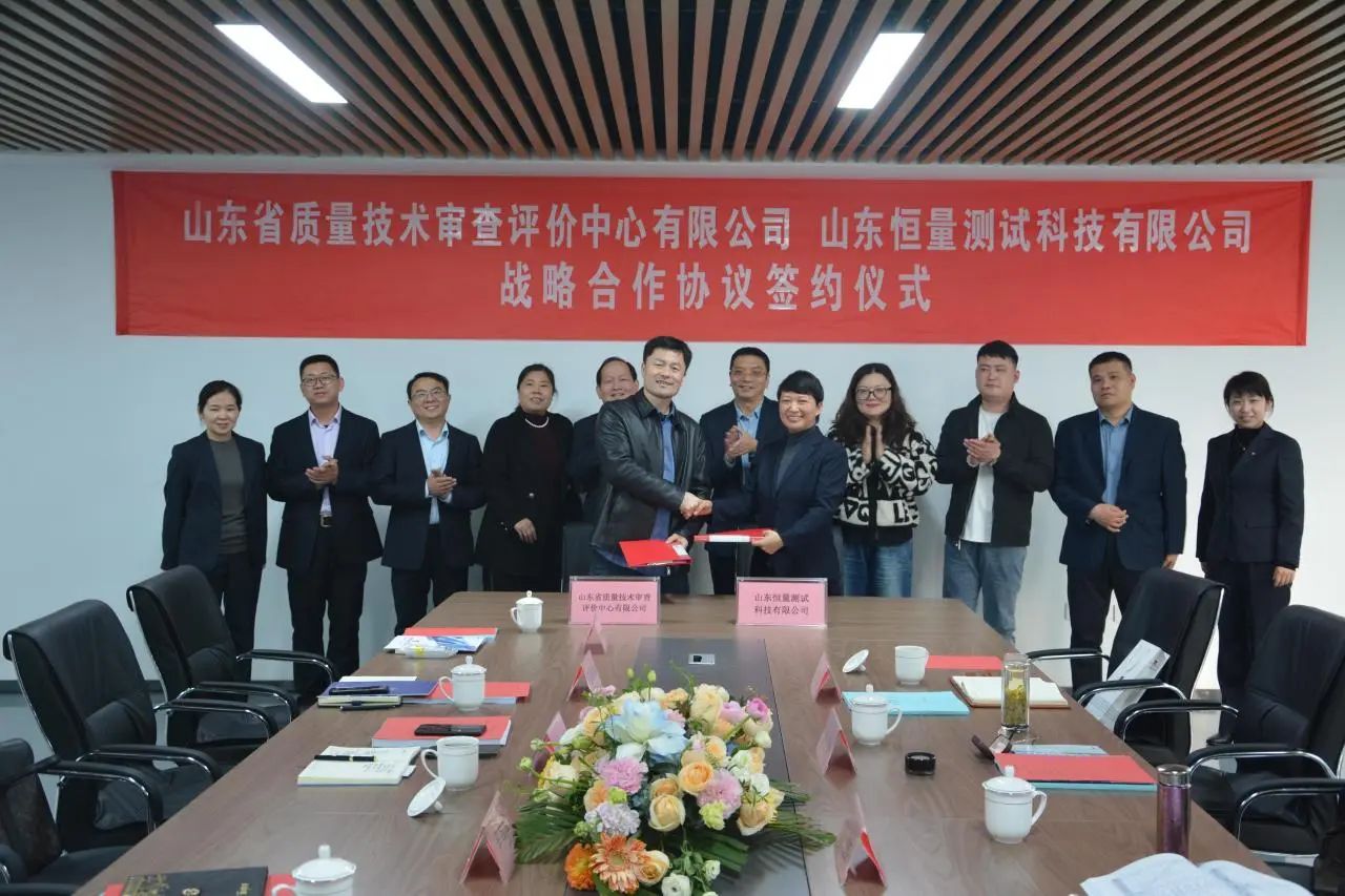 3月11日下午,山東省質(zhì)量技術(shù)審查評價中心有限公司黨委書記、總經(jīng)理汪立新一行蒞臨山東恒量測試科技有限公司,與總經(jīng)理岳宗龍進行了深度交流。雙方基于對行業(yè)發(fā)展的共同愿景,充分探討了合作的新機遇與新方向,并順利簽署戰(zhàn)略合作協(xié)議。