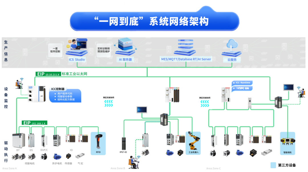 “一網到底”架構打破數據孤島,深度融合IT與OT,為工藝優化、異?;厮?、預測性維護以及5G工業互聯提供數據支撐。通過確定性傳輸和低延遲技術,確保關鍵數據實時、準確傳遞,為智能工廠建設奠定堅實基礎。