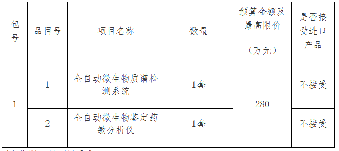 項目名稱:啟東市人民醫院全自動微生物質譜檢測系統、全自動微生物鑒定藥敏分析儀