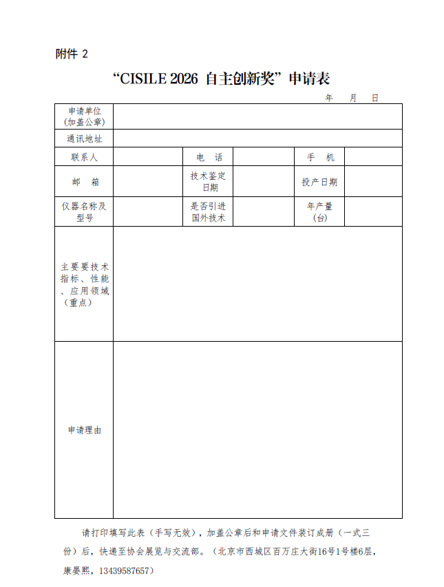 點(diǎn)擊“申請(qǐng)表”下載CISILE 2026 自主創(chuàng)新獎(jiǎng)申請(qǐng)表
