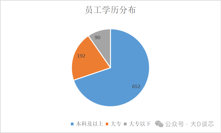 截止2025年3月31日,員工本科及以上人數為652(占比69.81%),大專人數為192(占比20.56%),大專以下人數為90(占比9.64%)。