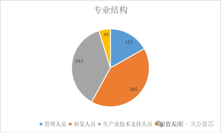 截至2025年3月31日,公司員工的專業結構為管理人員157人(占比16.81%)、研發人員385人(占比41.22%)、生產及技術支持347人(占比37.15%)和銷售人員45人(占比4.82%)。