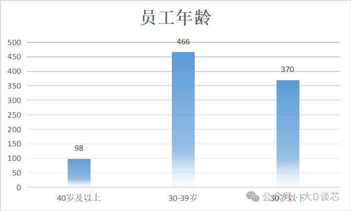 截至2025年3月31日,公司員工的年齡結構情況:40歲及以上為98人(占比10.49%),30-39歲為466人(占比49.89%),30歲以下為370(占比39.61%)。