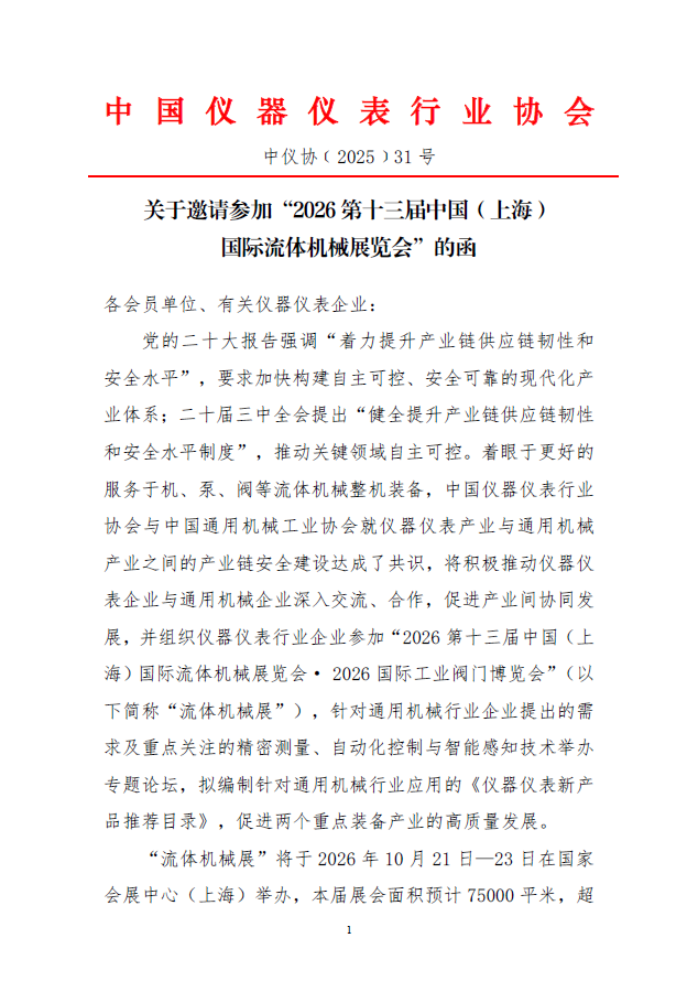 關于邀請參加2026第十三屆中國上海國際流體機械展