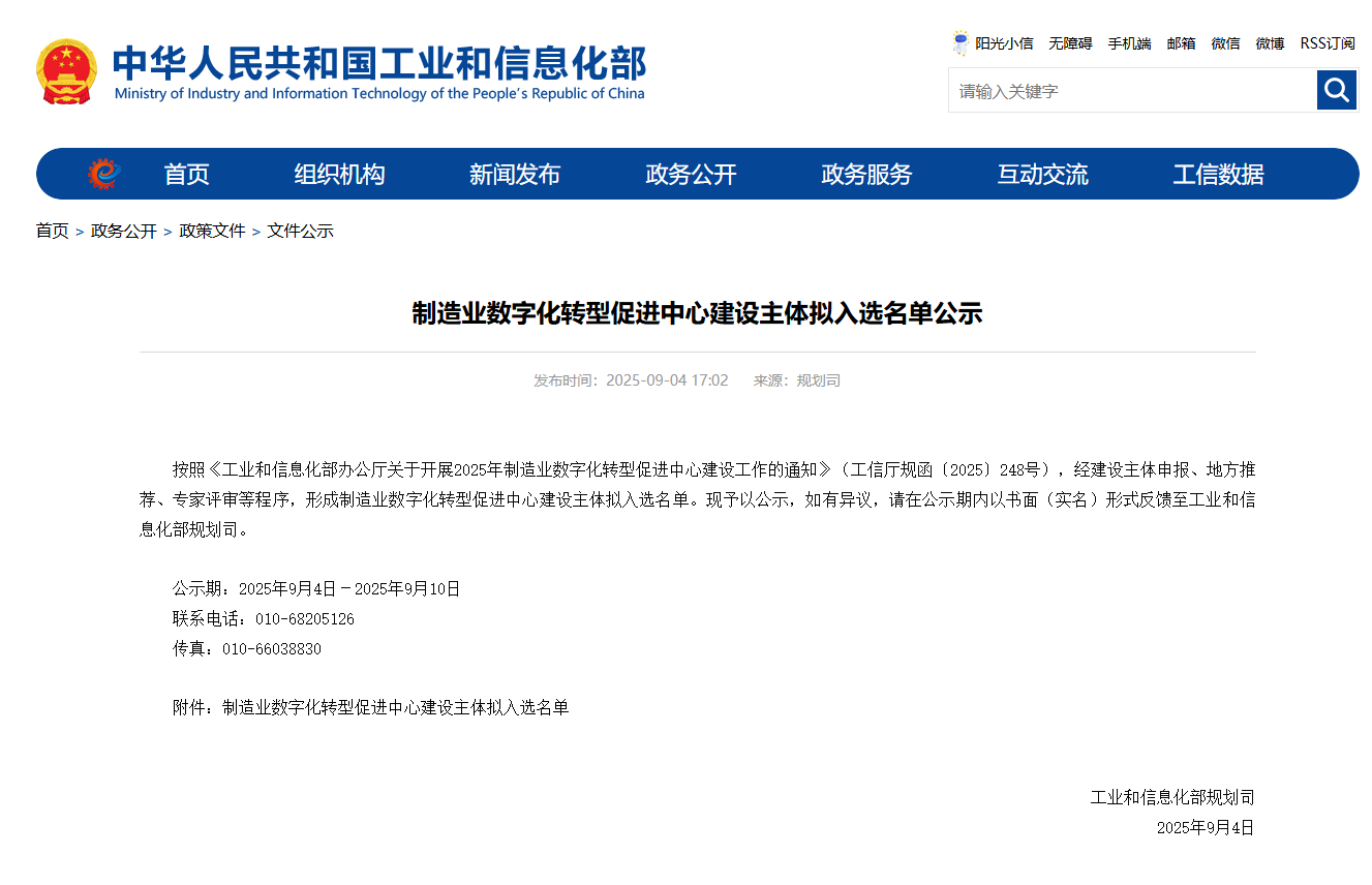 近日,工業和信息化部公示《制造業數字化轉型促進中心建設主體擬入選名單》,合肥金星智控科技股份有限公司成功入選,成為全國62家獲批單位之一,安徽省僅5家。