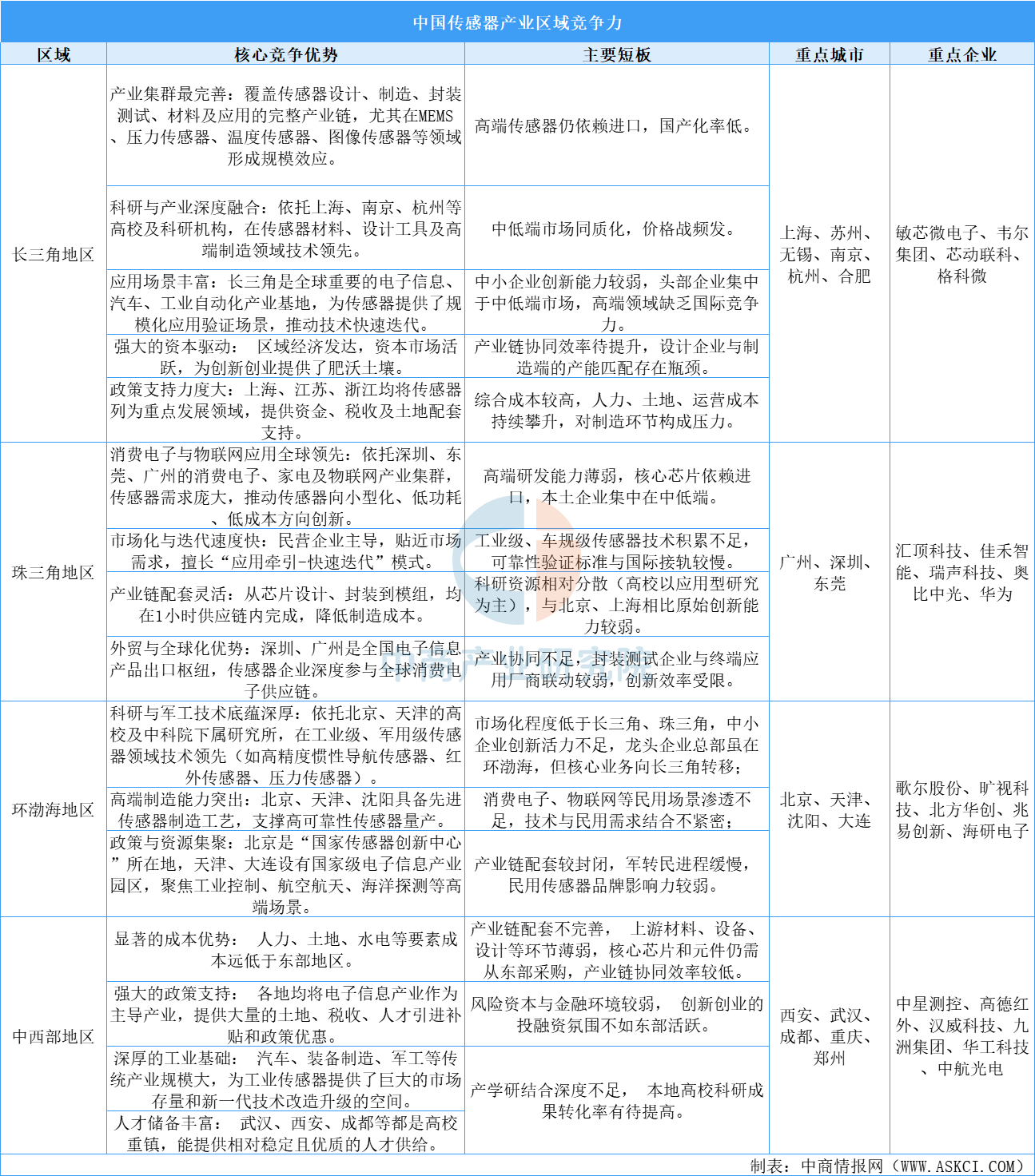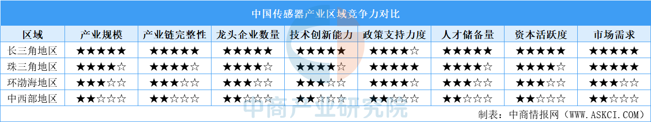 傳感器區(qū)域競爭力對比