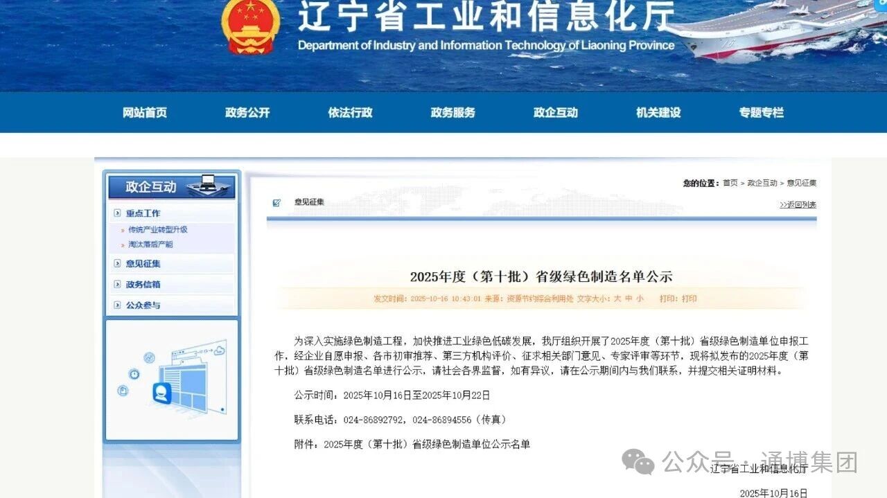 丹東通博成功入選 2025 年度(第十批)省級綠色
