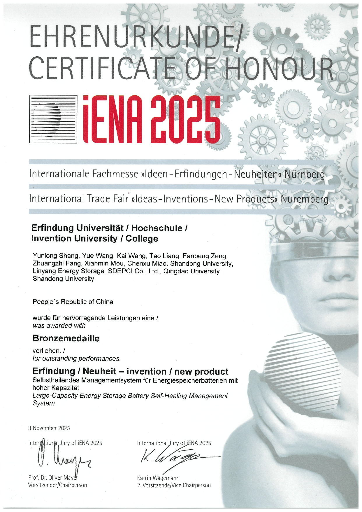 林洋儲能榮獲iENA國際發明獎