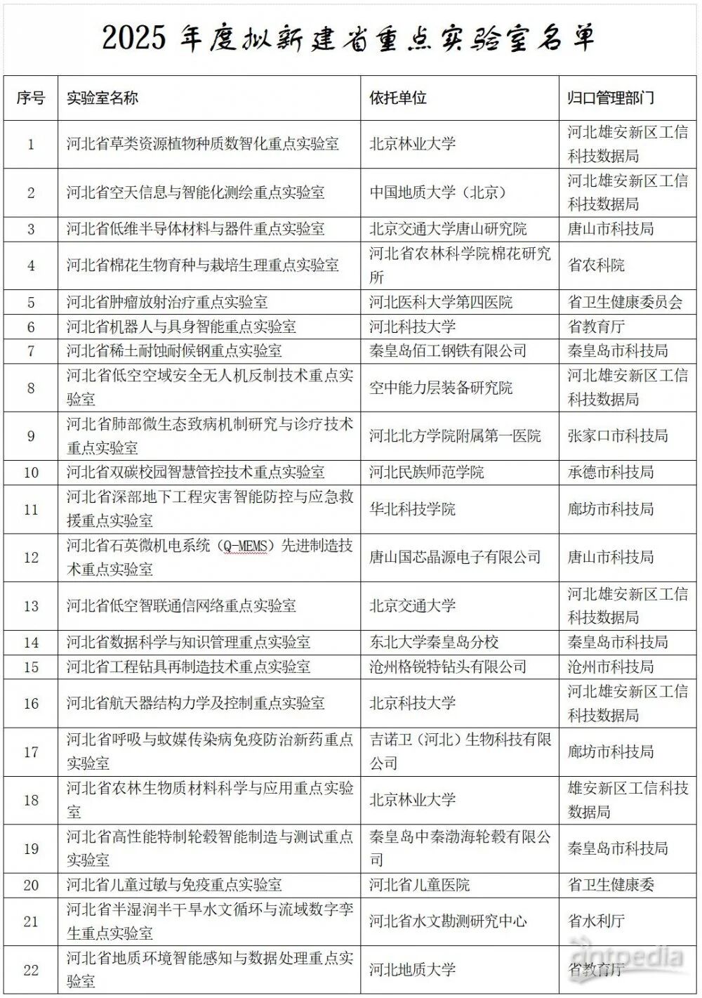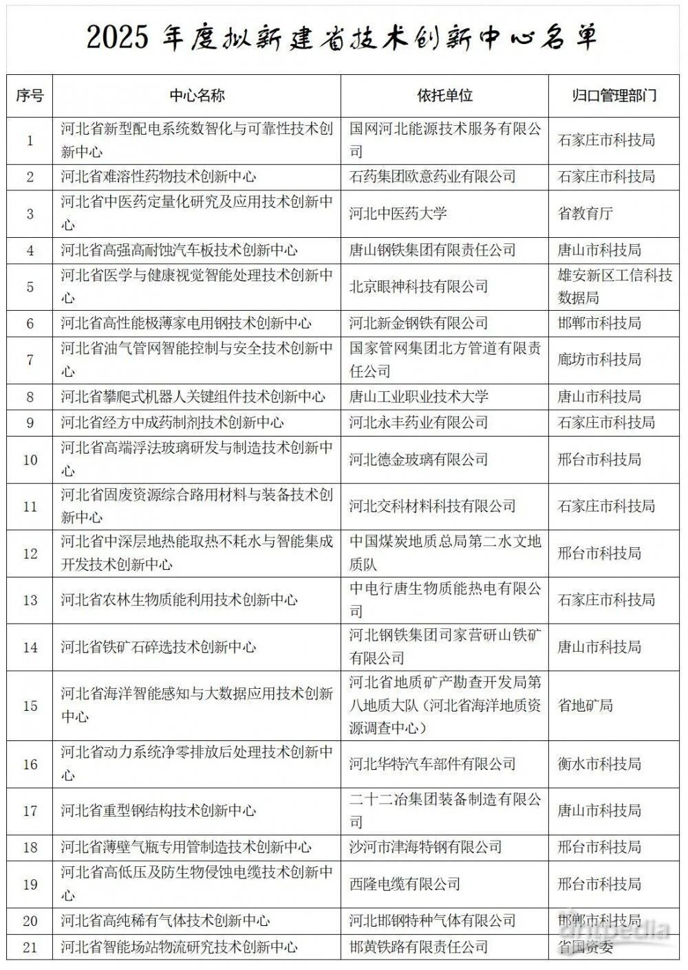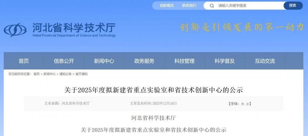 河北省科學技術廳關于2025年度擬新建省重點實驗室和省技術創新中心的公示