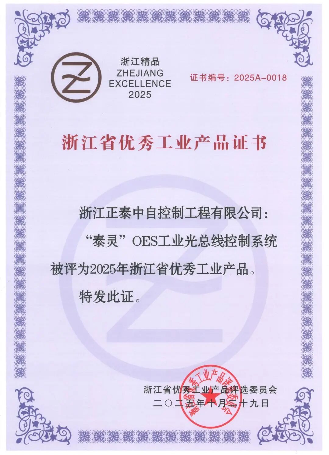 近日,浙江省優(yōu)秀工業(yè)產(chǎn)品評選委員會公布2025年浙江省優(yōu)秀工業(yè)產(chǎn)品名單,浙江正泰中自控制工程有限公司"泰靈"OES工業(yè)光總線控制系統(tǒng)憑借優(yōu)異的產(chǎn)品力從參加評審的產(chǎn)品中脫穎而出,成功入選2025 年浙江省優(yōu)秀工業(yè)產(chǎn)品名單,成為浙江優(yōu)質(zhì)工業(yè)的代言產(chǎn)品。