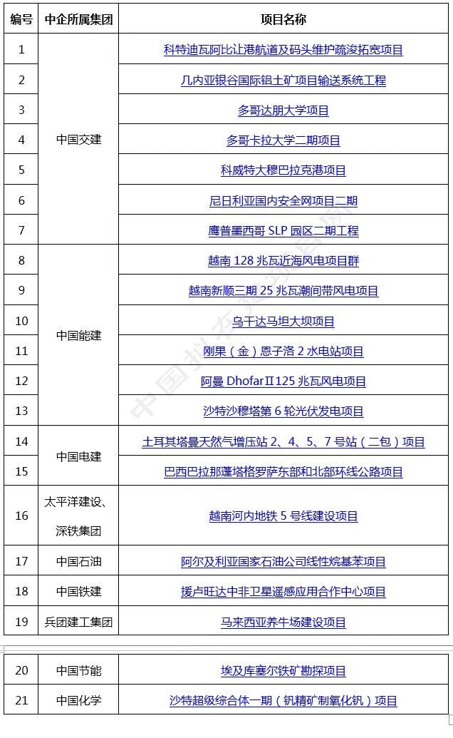 中企海外項目:上周新簽/中標(biāo)/公告21個項目