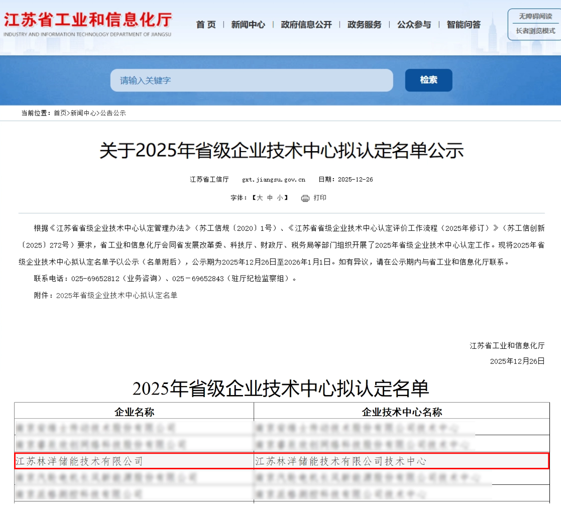 這是繼獲批“鋰電池儲能系統江蘇省產業技術工程化中心”后,公司在省級科技創新平臺建設上實現的又一重要突破,標志著林洋儲能在技術研發體系構建與產業化能力方面,再次獲得省級工信系統的權威認可。