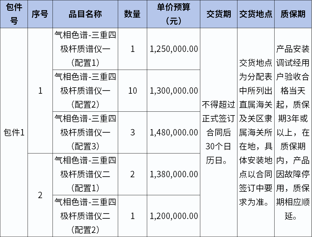 項目名稱: 海關(guān)總署2025年氣相色譜-三重四極桿質(zhì)譜儀(第一批)采購項目(重新招標(biāo))