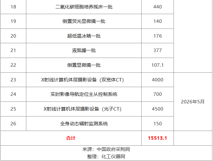 近期,上海臨床研究中心發(fā)布多項(xiàng)儀器采購(gòu)意向,計(jì)劃采購(gòu)高分辨空間組學(xué)分析質(zhì)譜儀、低溫顯微觀察系統(tǒng)、細(xì)胞生物反應(yīng)器系統(tǒng)、生物安全柜、細(xì)胞計(jì)數(shù)儀、二氧化碳細(xì)胞培養(yǎng)搖床、倒置熒光顯微鏡、超低溫冰箱等儀器設(shè)備,預(yù)算總金額15513.1萬(wàn)元。預(yù)計(jì)采購(gòu)時(shí)間2026年3月~5月。